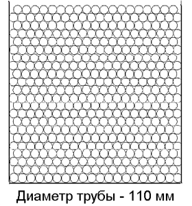 Труба Ø 110Количество труб:440 шт. Количество, п.м.: 12 п.м. – 5280 п.м.; 12,5 п.м. – 5500 п.м.; 13 п.м. – 5720 п.м. Высота загрузки: 2,42м. Количество рядов: 22 шт. (в рядах по 20 шт.) |