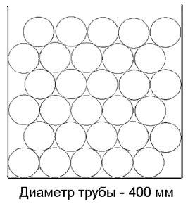 Труба Ø 400Количество труб: 30 шт. Количество, п.м.: 12 п.м. – 360 п.м.; 12,5 п.м. – 375 п.м.; 13 п.м. – 390 п.м. Высота загрузки: 2,40м. Количество рядов: 6 шт. (в рядах по 5 шт.) |