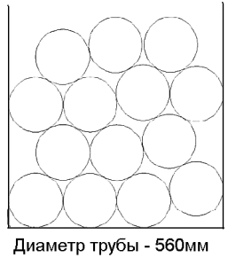 Труба Ø 560Количество труб: 14 шт. Количество, п.м.: 12 п.м. – 168 п.м.; 12,5 п.м. – 175 п.м.; 13 п.м. – 182 п.м. Высота загрузки: 2,24м. Количество рядов: 2 шт. (в рядах по 4,3 шт.) |